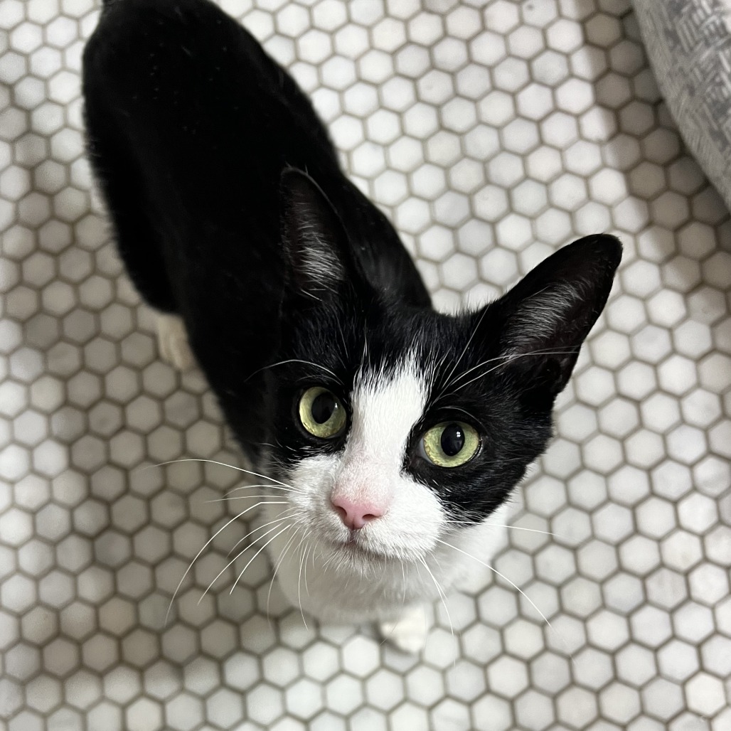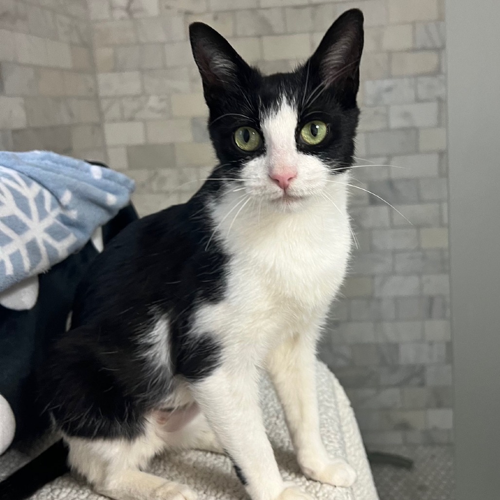 Tuxi is a teenage kitten who is great with kids and people. She very playful and full of life but when it is time to settle down, boy does she love her cuddles. She absolutely LOVES being held like a baby and loves attention. Also, she is pretty verbal., but soft spoken.Sometimes her meows are so faint you can barely hear them. She’s not a fan of dogs and could get along with other cats that also like other cats.Go to Furkids.org/adopt and complete an adoption application. Thanks for considering Furkids Animal Rescue and Shelters!